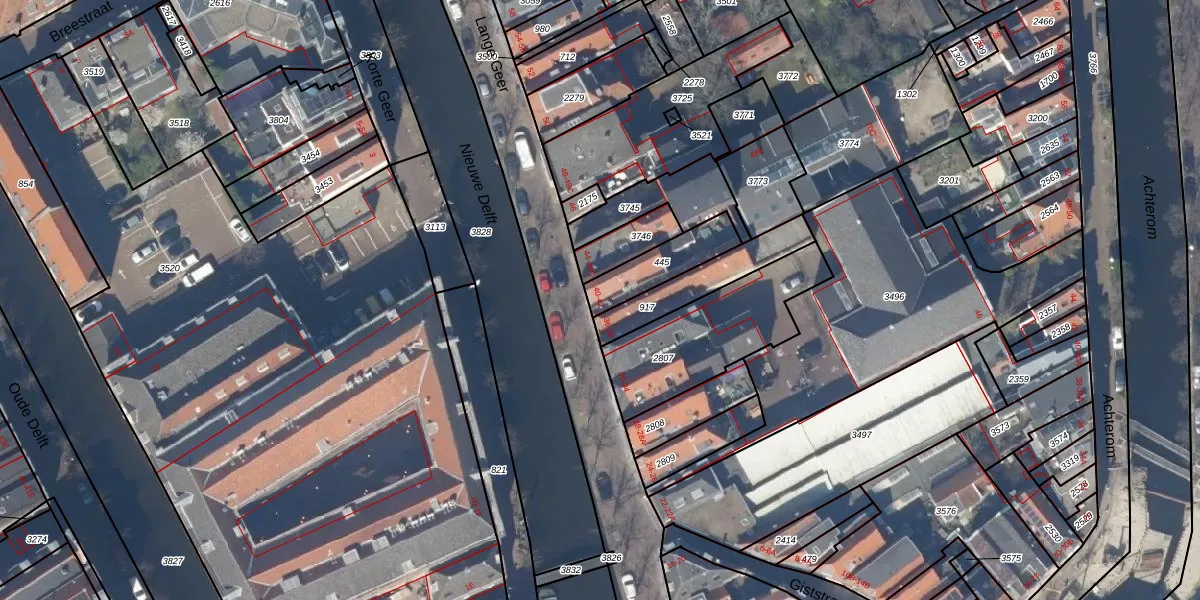 Lange Geer 40 is gelegen op kadastraal perceel DEL00E445. Deze kadastrale aanduiding is uniek en wordt gebruikt door het Kadaster om eigendomsrechten en andere zakelijke rechten vast te leggen. Het perceel maakt onderdeel uit van de kadastrale gemeente Delft.