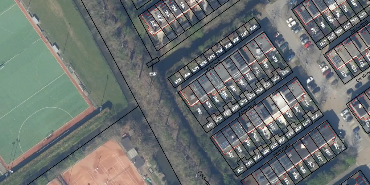 Lentepad 1 is gelegen op kadastraal perceel DEL00F7020. Deze kadastrale aanduiding is uniek en wordt gebruikt door het Kadaster om eigendomsrechten en andere zakelijke rechten vast te leggen. Het perceel maakt onderdeel uit van de kadastrale gemeente Delft.