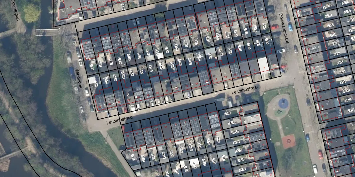 Lesothostraat 22 is gelegen op kadastraal perceel DEL00S2394. Deze kadastrale aanduiding is uniek en wordt gebruikt door het Kadaster om eigendomsrechten en andere zakelijke rechten vast te leggen. Het perceel maakt onderdeel uit van de kadastrale gemeente Delft.