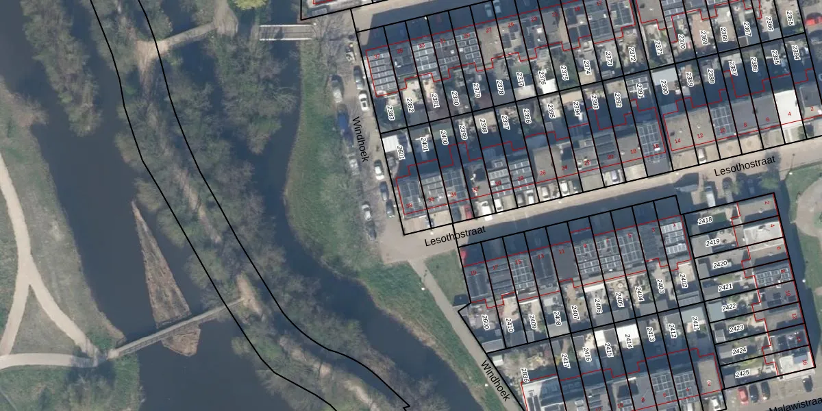 Het perceel waarop Lesothostraat 38 staat heeft een oppervlakte van 173 m². Dit is een middelgroot perceel. De perceeloppervlakte wordt geregistreerd door het Kadaster. Gedetailleerde informatie over de maten van dit perceel kunt u vinden in het rapport Kadastrale kaart met maatvoering van Lesothostraat 38.