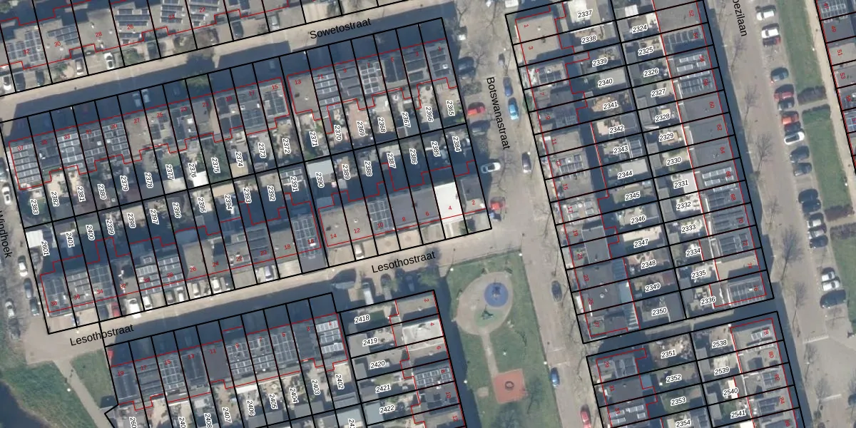 Het perceel waarop Lesothostraat 6 staat heeft een oppervlakte van 137 m². Dit is een middelgroot perceel. De perceeloppervlakte wordt geregistreerd door het Kadaster. Gedetailleerde informatie over de maten van dit perceel kunt u vinden in het rapport Kadastrale kaart met maatvoering van Lesothostraat 6.