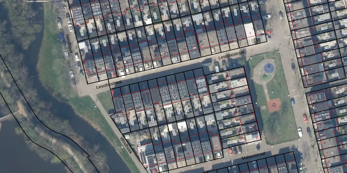 Lesothostraat 7 is gelegen op kadastraal perceel DEL00S2405. Deze kadastrale aanduiding is uniek en wordt gebruikt door het Kadaster om eigendomsrechten en andere zakelijke rechten vast te leggen. Het perceel maakt onderdeel uit van de kadastrale gemeente Delft.