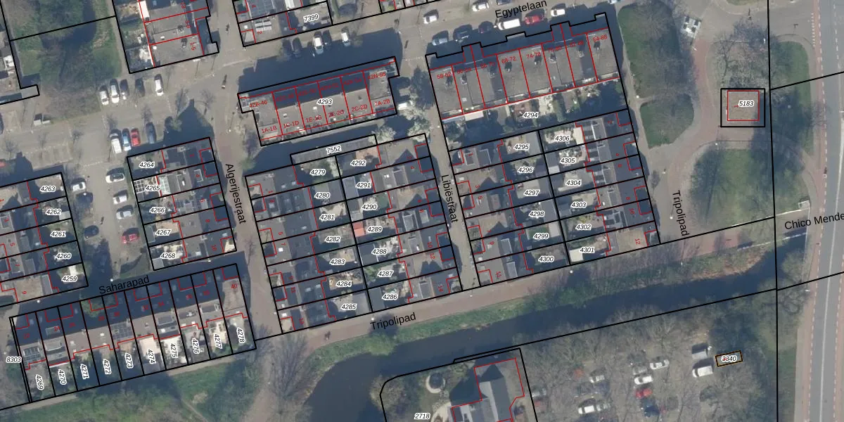 Libiëstraat 8 is gelegen op kadastraal perceel DEL00R4289. Deze kadastrale aanduiding is uniek en wordt gebruikt door het Kadaster om eigendomsrechten en andere zakelijke rechten vast te leggen. Het perceel maakt onderdeel uit van de kadastrale gemeente Delft.