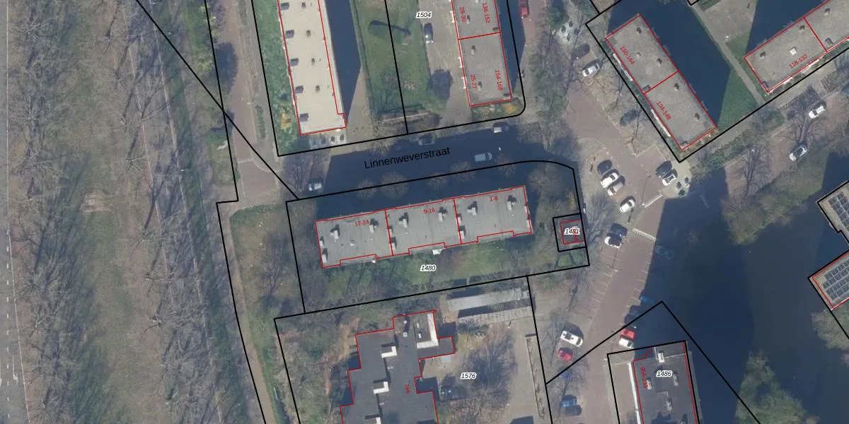 Het perceel waarop Linnenweverstraat 13 staat heeft een oppervlakte van 1747 m². Dit is een zeer groot perceel. De perceeloppervlakte wordt geregistreerd door het Kadaster. Gedetailleerde informatie over de maten van dit perceel kunt u vinden in het rapport Kadastrale kaart met maatvoering van Linnenweverstraat 13.
