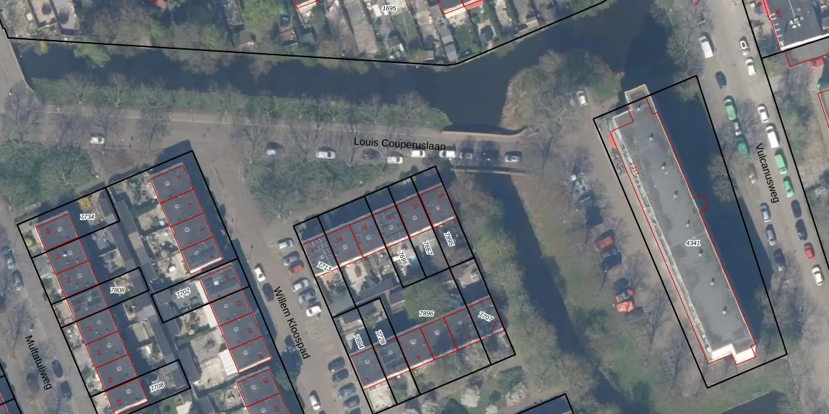 Gebruik de zoekbalk of klik op een perceel voor informatie over de adressen binnen dit perceel.