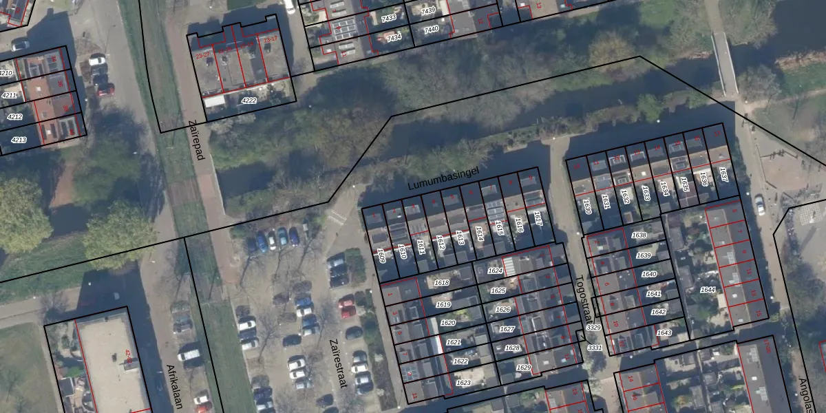 Gebruik de zoekbalk of klik op een perceel voor informatie over de adressen binnen dit perceel.