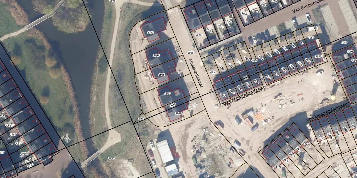 Het perceel waarop Maaskantstraat 12 staat heeft een oppervlakte van 365 m². Dit is een groot perceel. De perceeloppervlakte wordt geregistreerd door het Kadaster. Gedetailleerde informatie over de maten van dit perceel kunt u vinden in het rapport Kadastrale kaart met maatvoering van Maaskantstraat 12.