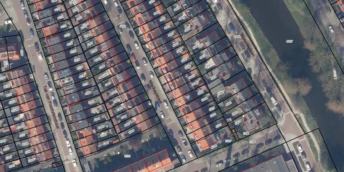 Gebruik de zoekbalk of klik op een perceel voor informatie over de adressen binnen dit perceel.