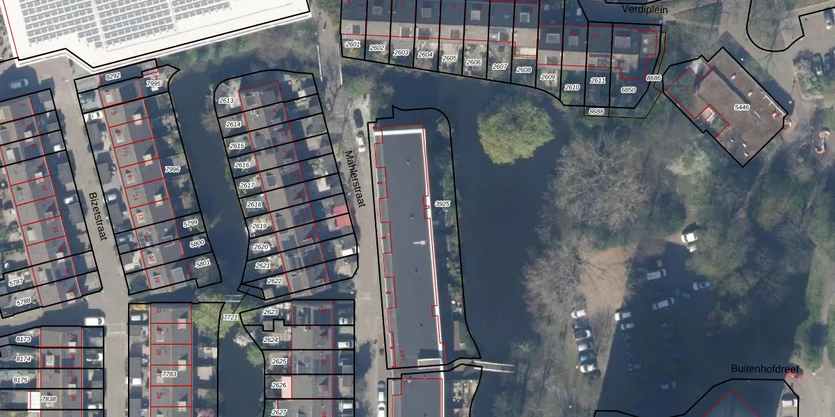 Het perceel waarop Mahlerstraat 65 staat heeft een oppervlakte van 1204 m². Dit is een zeer groot perceel. De perceeloppervlakte wordt geregistreerd door het Kadaster. Gedetailleerde informatie over de maten van dit perceel kunt u vinden in het rapport Kadastrale kaart met maatvoering van Mahlerstraat 65.