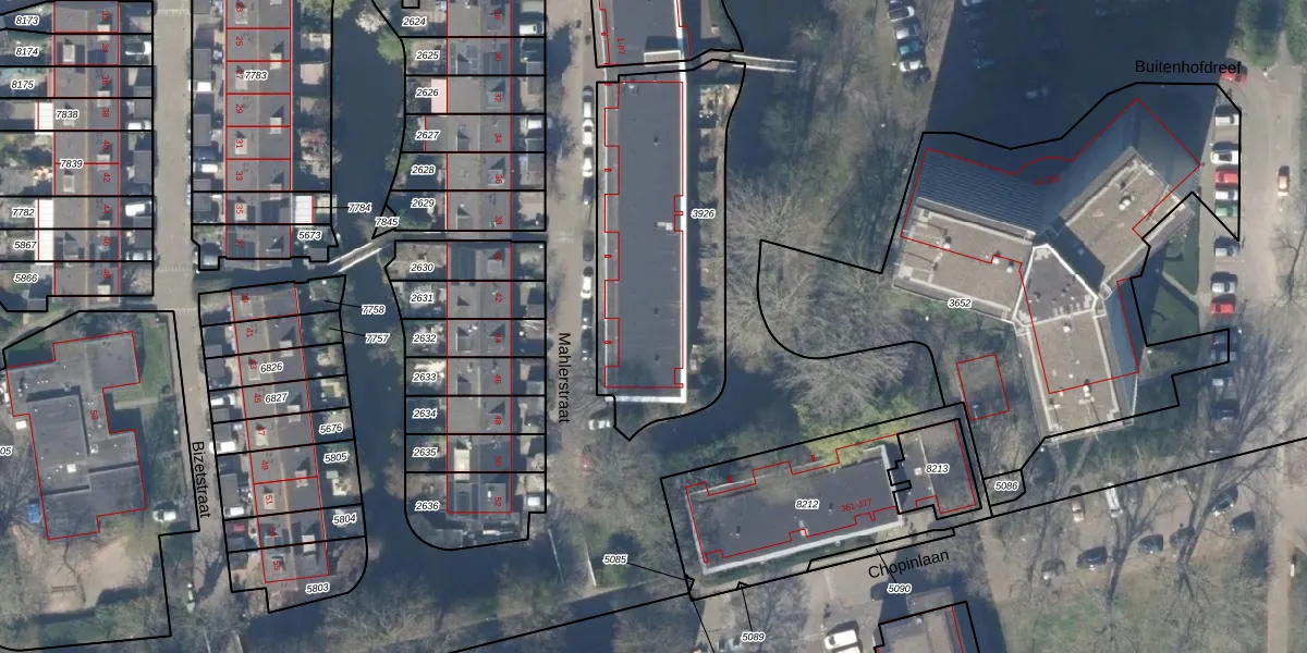 Het perceel waarop Mahlerstraat 85 staat heeft een oppervlakte van 1069 m². Dit is een zeer groot perceel. De perceeloppervlakte wordt geregistreerd door het Kadaster. Gedetailleerde informatie over de maten van dit perceel kunt u vinden in het rapport Kadastrale kaart met maatvoering van Mahlerstraat 85.