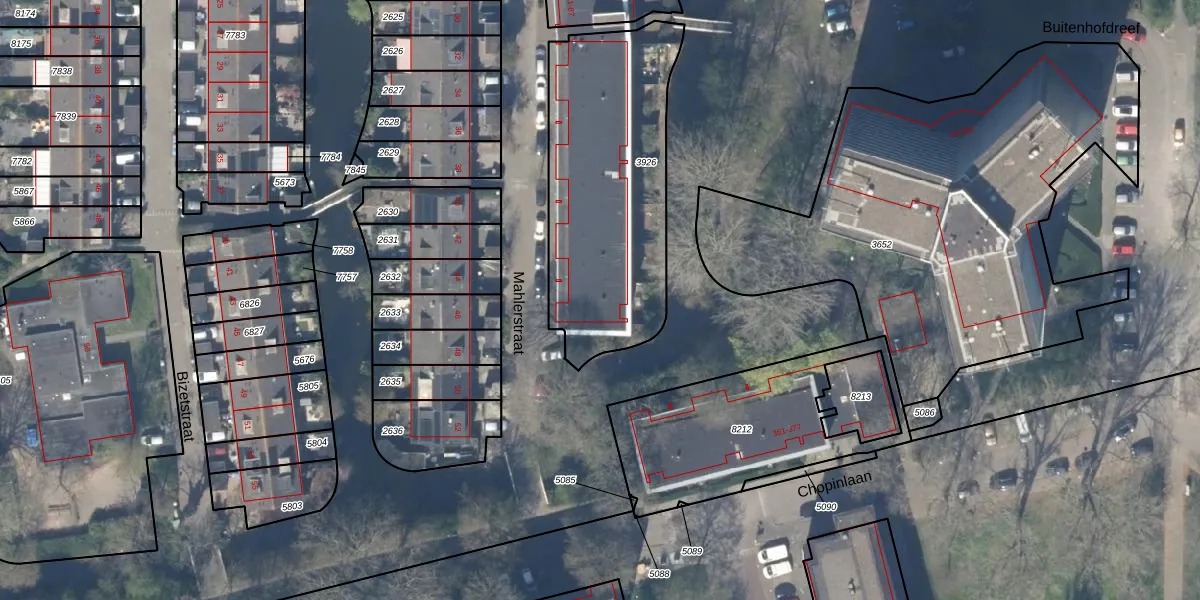 Het perceel waarop Mahlerstraat 87 staat heeft een oppervlakte van 1069 m². Dit is een zeer groot perceel. De perceeloppervlakte wordt geregistreerd door het Kadaster. Gedetailleerde informatie over de maten van dit perceel kunt u vinden in het rapport Kadastrale kaart met maatvoering van Mahlerstraat 87.