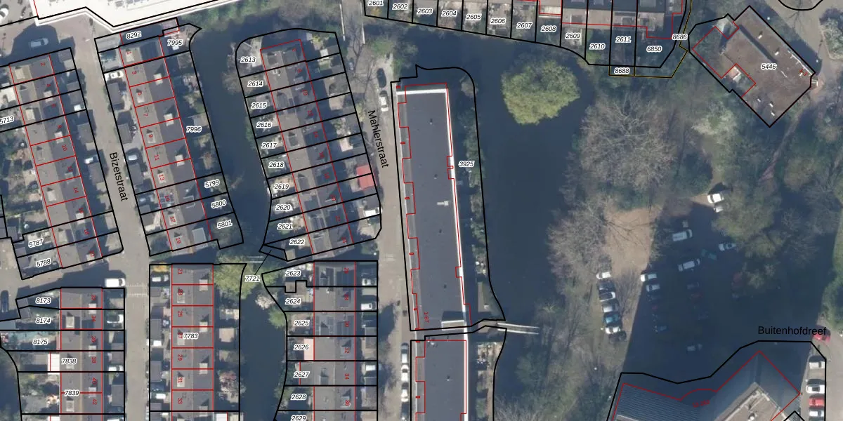 Het perceel waarop Mahlerstraat 9 staat heeft een oppervlakte van 1204 m². Dit is een zeer groot perceel. De perceeloppervlakte wordt geregistreerd door het Kadaster. Gedetailleerde informatie over de maten van dit perceel kunt u vinden in het rapport Kadastrale kaart met maatvoering van Mahlerstraat 9.