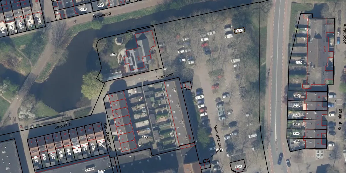 Mandelastraat 18 is gelegen op kadastraal perceel DEL00S3224. Deze kadastrale aanduiding is uniek en wordt gebruikt door het Kadaster om eigendomsrechten en andere zakelijke rechten vast te leggen. Het perceel maakt onderdeel uit van de kadastrale gemeente Delft.
