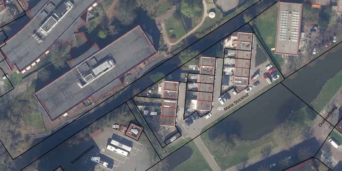 Maria Strickhof 13 is gelegen op kadastraal perceel DEL00P2747. Deze kadastrale aanduiding is uniek en wordt gebruikt door het Kadaster om eigendomsrechten en andere zakelijke rechten vast te leggen. Het perceel maakt onderdeel uit van de kadastrale gemeente Delft.