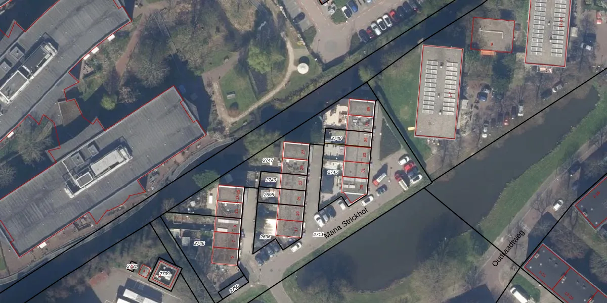Het perceel waarop Maria Strickhof 27 staat heeft een oppervlakte van 740 m². Dit is een groot perceel. De perceeloppervlakte wordt geregistreerd door het Kadaster. Gedetailleerde informatie over de maten van dit perceel kunt u vinden in het rapport Kadastrale kaart met maatvoering van Maria Strickhof 27.