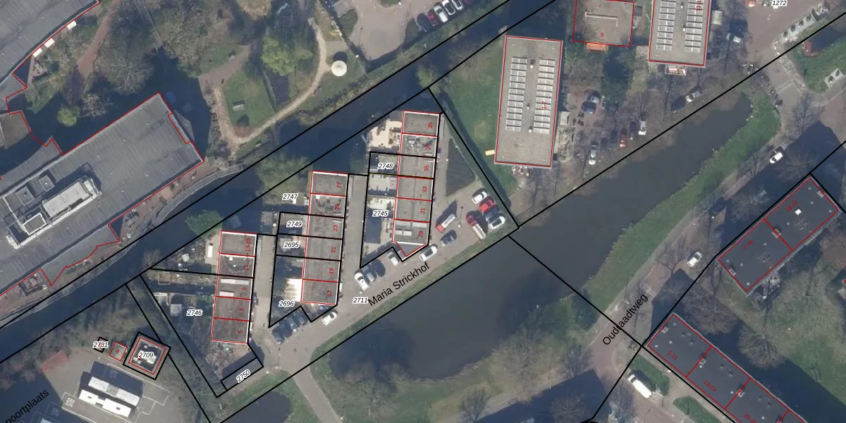 Maria Strickhof 31 is gelegen op kadastraal perceel DEL00P2745. Deze kadastrale aanduiding is uniek en wordt gebruikt door het Kadaster om eigendomsrechten en andere zakelijke rechten vast te leggen. Het perceel maakt onderdeel uit van de kadastrale gemeente Delft.