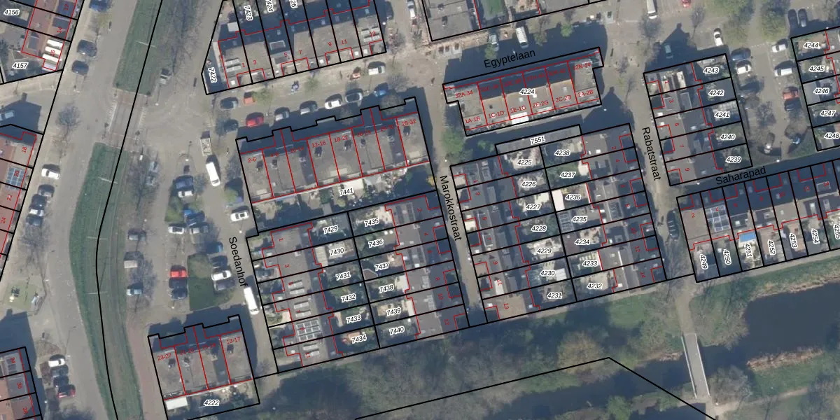 Gebruik de zoekbalk of klik op een perceel voor informatie over de adressen binnen dit perceel.