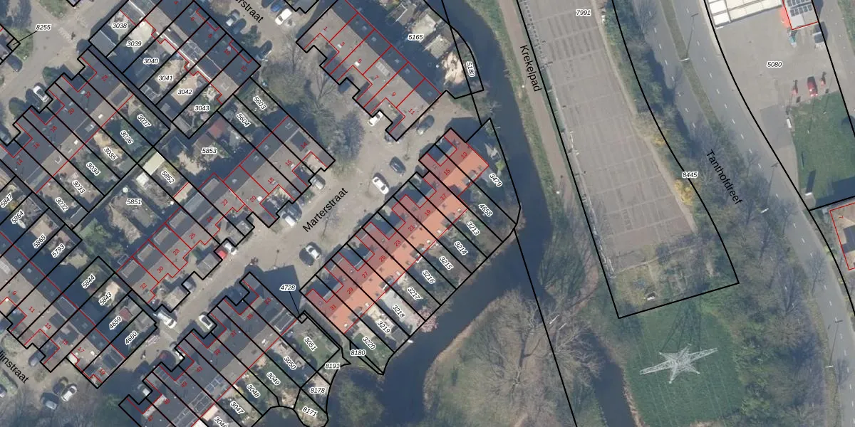Het perceel waarop Marterstraat 19 staat heeft een oppervlakte van 135 m². Dit is een middelgroot perceel. De perceeloppervlakte wordt geregistreerd door het Kadaster. Gedetailleerde informatie over de maten van dit perceel kunt u vinden in het rapport Kadastrale kaart met maatvoering van Marterstraat 19.