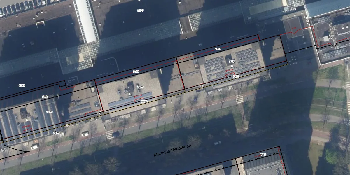 Het perceel waarop Martinus Nijhofflaan 290 staat heeft een oppervlakte van 740 m². Dit is een groot perceel. De perceeloppervlakte wordt geregistreerd door het Kadaster. Gedetailleerde informatie over de maten van dit perceel kunt u vinden in het rapport Kadastrale kaart met maatvoering van Martinus Nijhofflaan 290.