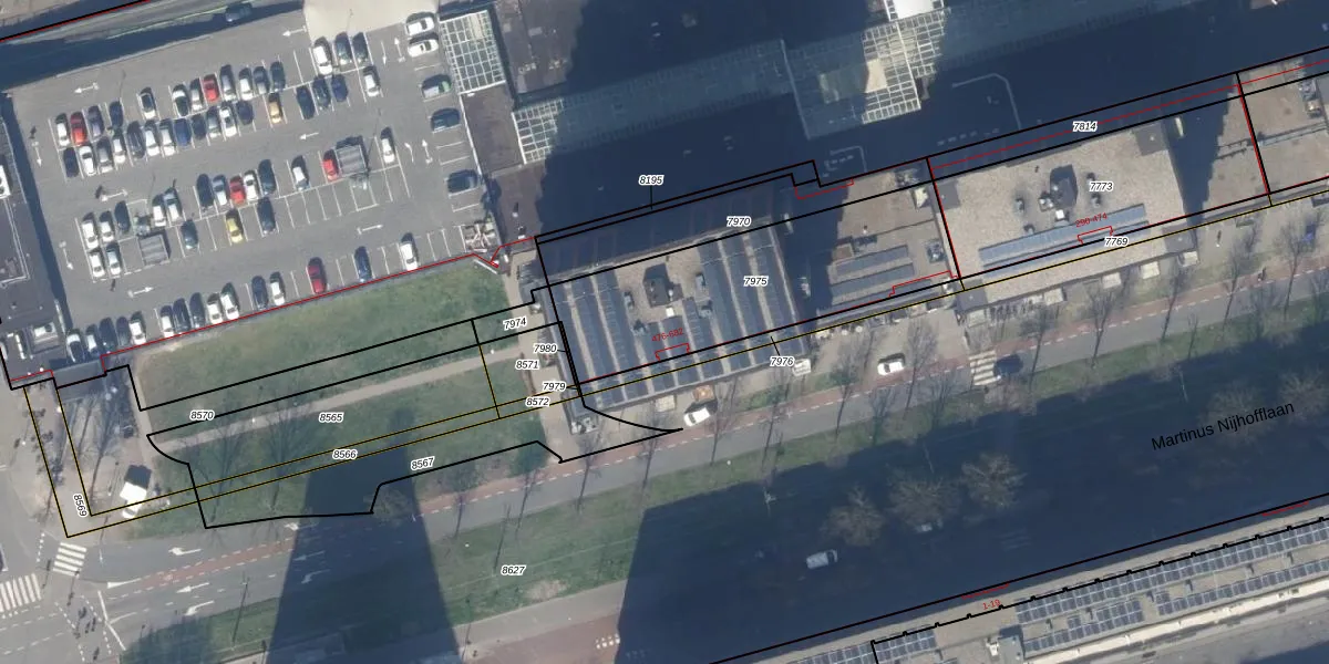 Martinus Nijhofflaan 614 is gelegen op kadastraal perceel DEL00R7975. Deze kadastrale aanduiding is uniek en wordt gebruikt door het Kadaster om eigendomsrechten en andere zakelijke rechten vast te leggen. Het perceel maakt onderdeel uit van de kadastrale gemeente Delft.