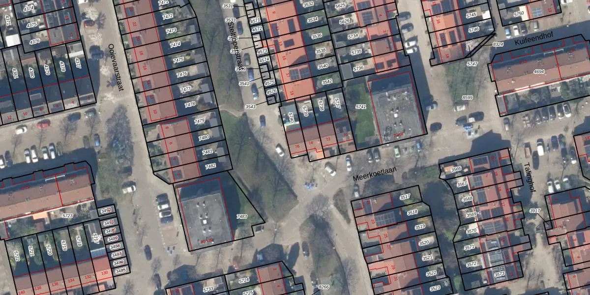 Meerkoetlaan 76 is gelegen op kadastraal perceel DEL00R5740. Deze kadastrale aanduiding is uniek en wordt gebruikt door het Kadaster om eigendomsrechten en andere zakelijke rechten vast te leggen. Het perceel maakt onderdeel uit van de kadastrale gemeente Delft.