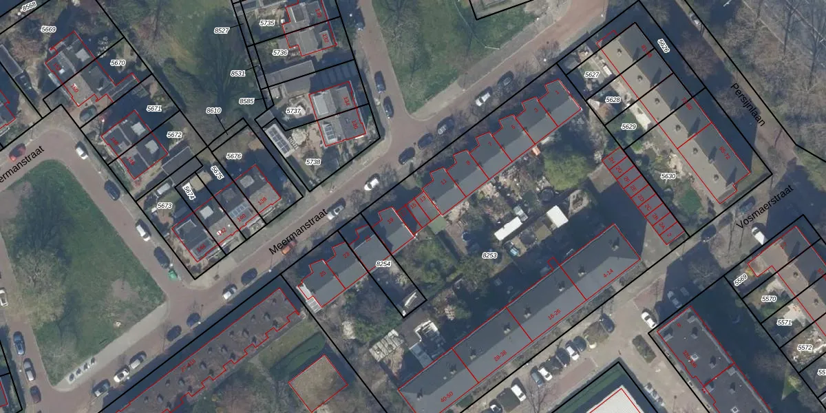 Het perceel waarop Meermanstraat 15 staat heeft een oppervlakte van 4290 m². Dit is een zeer groot perceel. De perceeloppervlakte wordt geregistreerd door het Kadaster. Gedetailleerde informatie over de maten van dit perceel kunt u vinden in het rapport Kadastrale kaart met maatvoering van Meermanstraat 15.