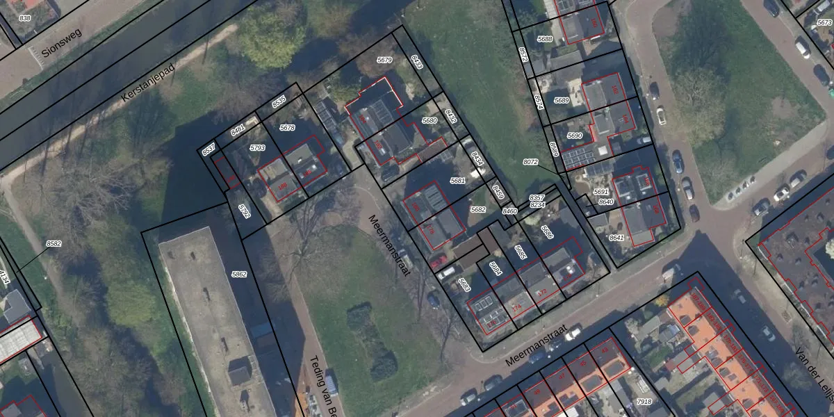 Het perceel waarop Meermanstraat 180 staat heeft een oppervlakte van 264 m². Dit is een middelgroot perceel. De perceeloppervlakte wordt geregistreerd door het Kadaster. Gedetailleerde informatie over de maten van dit perceel kunt u vinden in het rapport Kadastrale kaart met maatvoering van Meermanstraat 180.