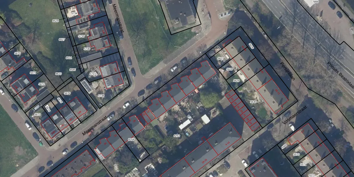Het perceel waarop Meermanstraat 7 staat heeft een oppervlakte van 4290 m². Dit is een zeer groot perceel. De perceeloppervlakte wordt geregistreerd door het Kadaster. Gedetailleerde informatie over de maten van dit perceel kunt u vinden in het rapport Kadastrale kaart met maatvoering van Meermanstraat 7.