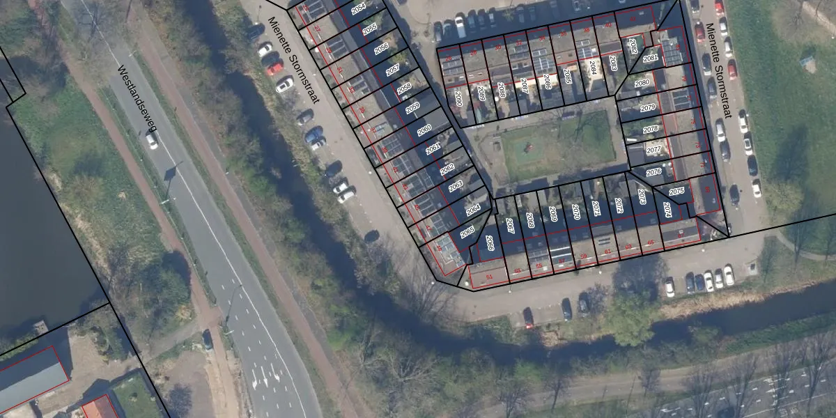Mienette Stormstraat 45 is gelegen op kadastraal perceel DEL00O2063. Deze kadastrale aanduiding is uniek en wordt gebruikt door het Kadaster om eigendomsrechten en andere zakelijke rechten vast te leggen. Het perceel maakt onderdeel uit van de kadastrale gemeente Delft.