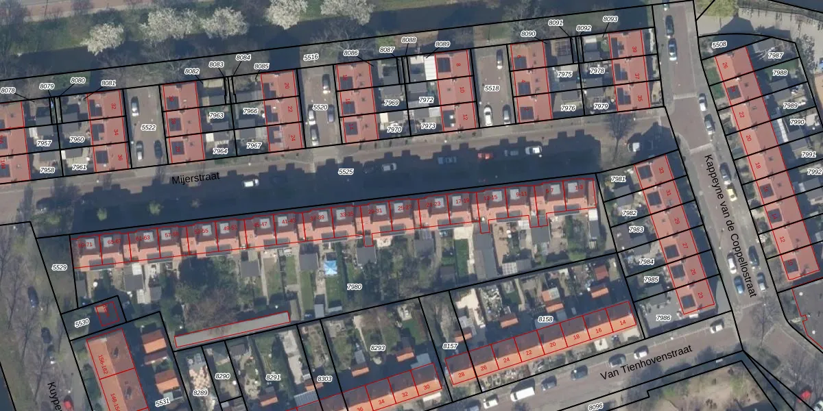 Het perceel waarop Mijerstraat 25 staat heeft een oppervlakte van 3213 m². Dit is een zeer groot perceel. De perceeloppervlakte wordt geregistreerd door het Kadaster. Gedetailleerde informatie over de maten van dit perceel kunt u vinden in het rapport Kadastrale kaart met maatvoering van Mijerstraat 25.