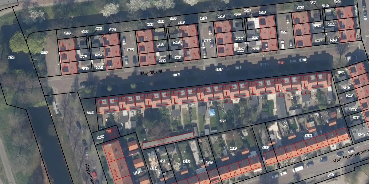 Het perceel waarop Mijerstraat 45 staat heeft een oppervlakte van 3213 m². Dit is een zeer groot perceel. De perceeloppervlakte wordt geregistreerd door het Kadaster. Gedetailleerde informatie over de maten van dit perceel kunt u vinden in het rapport Kadastrale kaart met maatvoering van Mijerstraat 45.