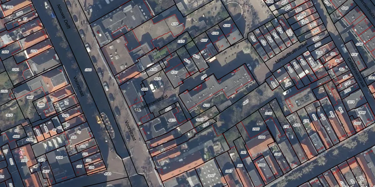 Minderbroerstraat 13 is gelegen op kadastraal perceel DEL00C4229. Deze kadastrale aanduiding is uniek en wordt gebruikt door het Kadaster om eigendomsrechten en andere zakelijke rechten vast te leggen. Het perceel maakt onderdeel uit van de kadastrale gemeente Delft.