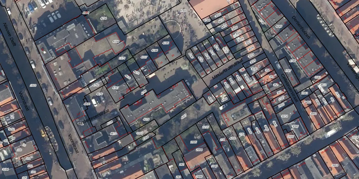 Minderbroerstraat 31 is gelegen op kadastraal perceel DEL00C4229. Deze kadastrale aanduiding is uniek en wordt gebruikt door het Kadaster om eigendomsrechten en andere zakelijke rechten vast te leggen. Het perceel maakt onderdeel uit van de kadastrale gemeente Delft.
