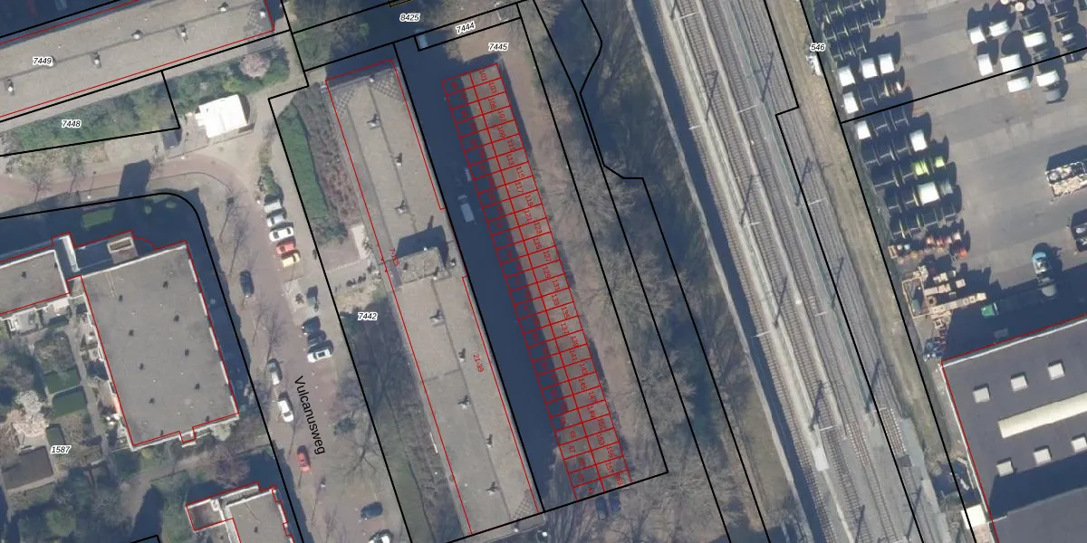 Het adres ligt op het perceel DEL00-R-7445, dat zich in de kadastrale gemeente Delft bevindt. De oppervlakte van het perceel is 2109 m². Dat is groter dan gemiddeld in Delft, waar de gemiddelde perceeloppervlakte op 924,69 m² ligt. De grootste perceeloppervlakte in de kadastrale gemeente is 64,1 ha. De kleinste oppervlakte bedraagt 0 m². Op het perceel liggen in totaal 60 adressen. In de Basisregistratie Kadaster (BRK) werden de grenzen van het perceel geregistreerd op 09-12-2009.
