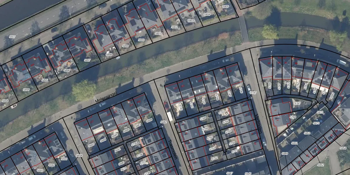 Gebruik de zoekbalk of klik op een perceel voor informatie over de adressen binnen dit perceel.