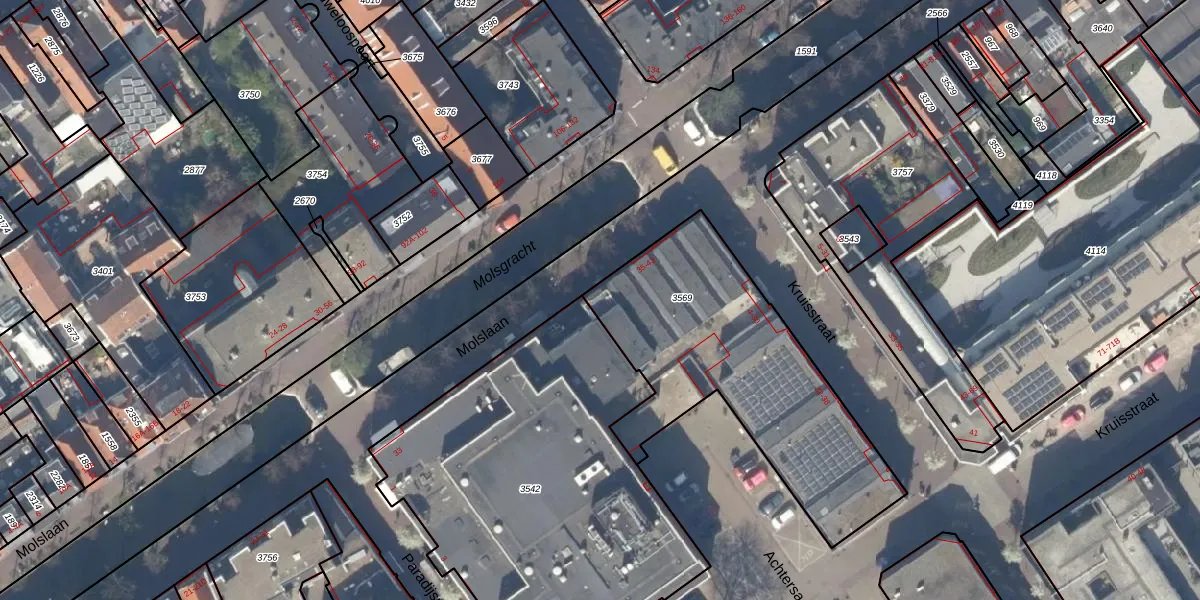 Molslaan 35 is gelegen op kadastraal perceel DEL00D3569. Deze kadastrale aanduiding is uniek en wordt gebruikt door het Kadaster om eigendomsrechten en andere zakelijke rechten vast te leggen. Het perceel maakt onderdeel uit van de kadastrale gemeente Delft.