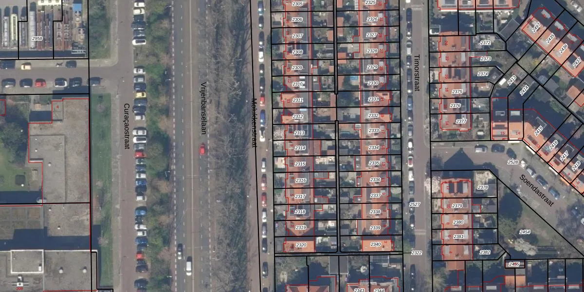 Gebruik de zoekbalk of klik op een perceel voor informatie over de adressen binnen dit perceel.