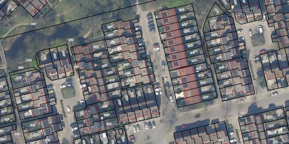 Gebruik de zoekbalk of klik op een perceel voor informatie over de adressen binnen dit perceel.