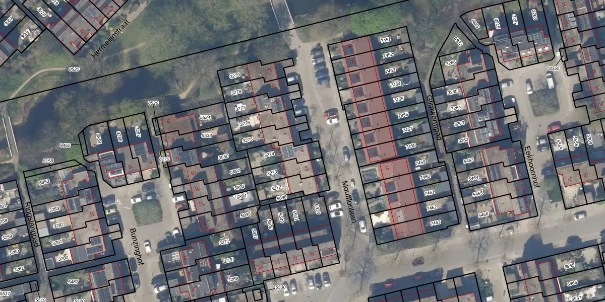 Moufflonlaan 5 is gelegen op kadastraal perceel DEL00R3274. Deze kadastrale aanduiding is uniek en wordt gebruikt door het Kadaster om eigendomsrechten en andere zakelijke rechten vast te leggen. Het perceel maakt onderdeel uit van de kadastrale gemeente Delft.