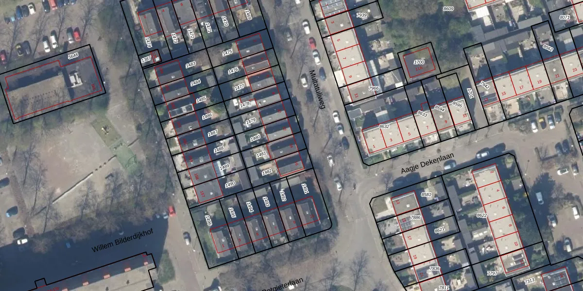 Multatuliweg 14 is gelegen op kadastraal perceel DEL00R1481. Deze kadastrale aanduiding is uniek en wordt gebruikt door het Kadaster om eigendomsrechten en andere zakelijke rechten vast te leggen. Het perceel maakt onderdeel uit van de kadastrale gemeente Delft.