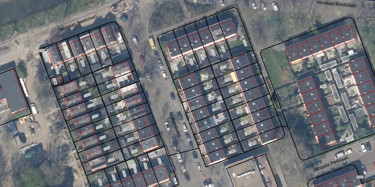 Het perceel waarop Multatuliweg 39 staat heeft een oppervlakte van 131 m². Dit is een middelgroot perceel. De perceeloppervlakte wordt geregistreerd door het Kadaster. Gedetailleerde informatie over de maten van dit perceel kunt u vinden in het rapport Kadastrale kaart met maatvoering van Multatuliweg 39.