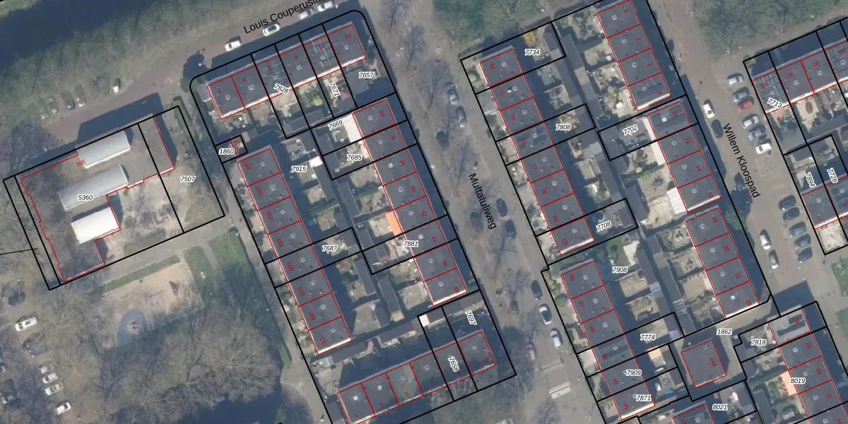 Het perceel waarop Multatuliweg 42 staat heeft een oppervlakte van 2792 m². Dit is een zeer groot perceel. De perceeloppervlakte wordt geregistreerd door het Kadaster. Gedetailleerde informatie over de maten van dit perceel kunt u vinden in het rapport Kadastrale kaart met maatvoering van Multatuliweg 42.