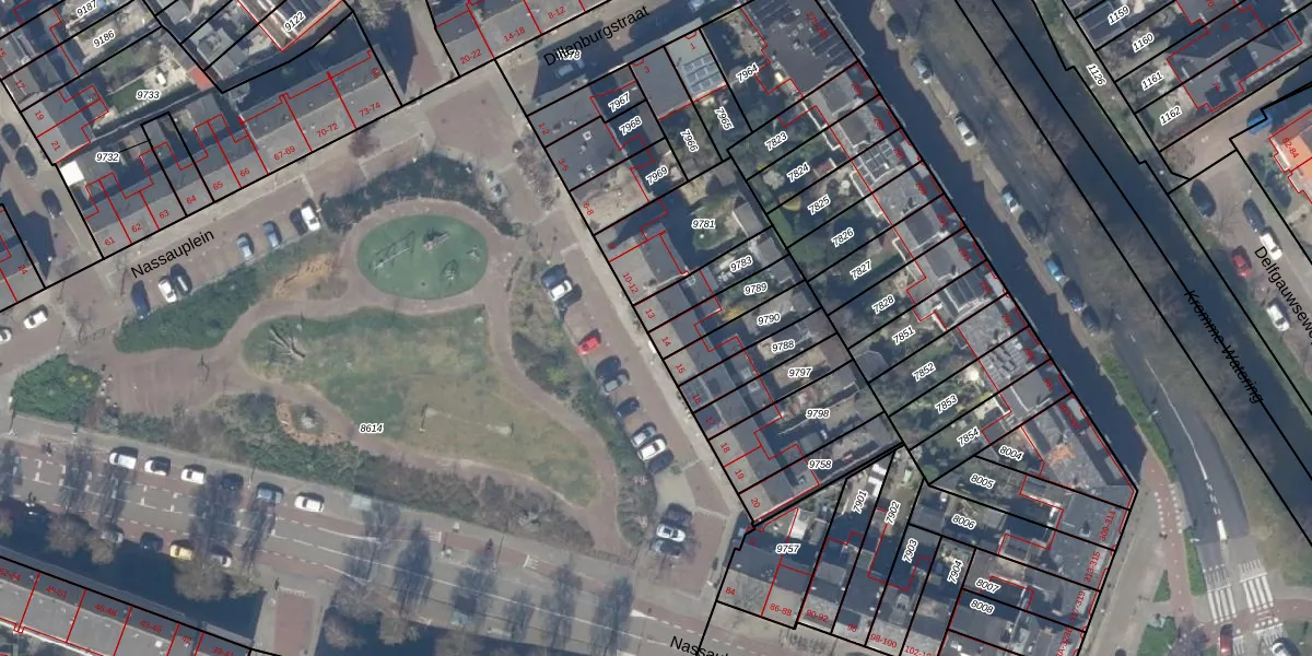 Nassauplein 13 is gelegen op kadastraal perceel DEL00A9783. Deze kadastrale aanduiding is uniek en wordt gebruikt door het Kadaster om eigendomsrechten en andere zakelijke rechten vast te leggen. Het perceel maakt onderdeel uit van de kadastrale gemeente Delft.