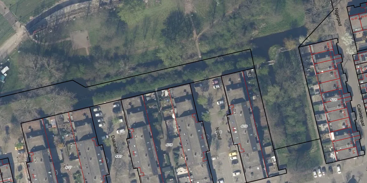 Het perceel waarop Nijlhof 39 staat heeft een oppervlakte van 2378 m². Dit is een zeer groot perceel. De perceeloppervlakte wordt geregistreerd door het Kadaster. Gedetailleerde informatie over de maten van dit perceel kunt u vinden in het rapport Kadastrale kaart met maatvoering van Nijlhof 39.