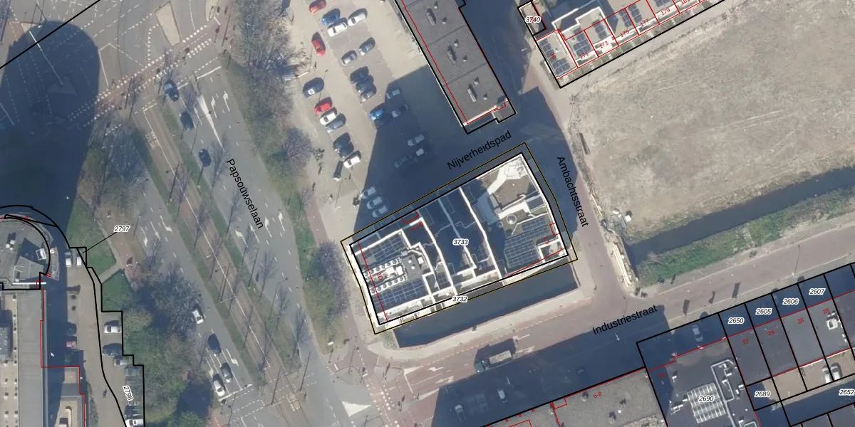 Nijverheidspad 166 is gelegen op kadastraal perceel DEL00O3733. Deze kadastrale aanduiding is uniek en wordt gebruikt door het Kadaster om eigendomsrechten en andere zakelijke rechten vast te leggen. Het perceel maakt onderdeel uit van de kadastrale gemeente Delft.