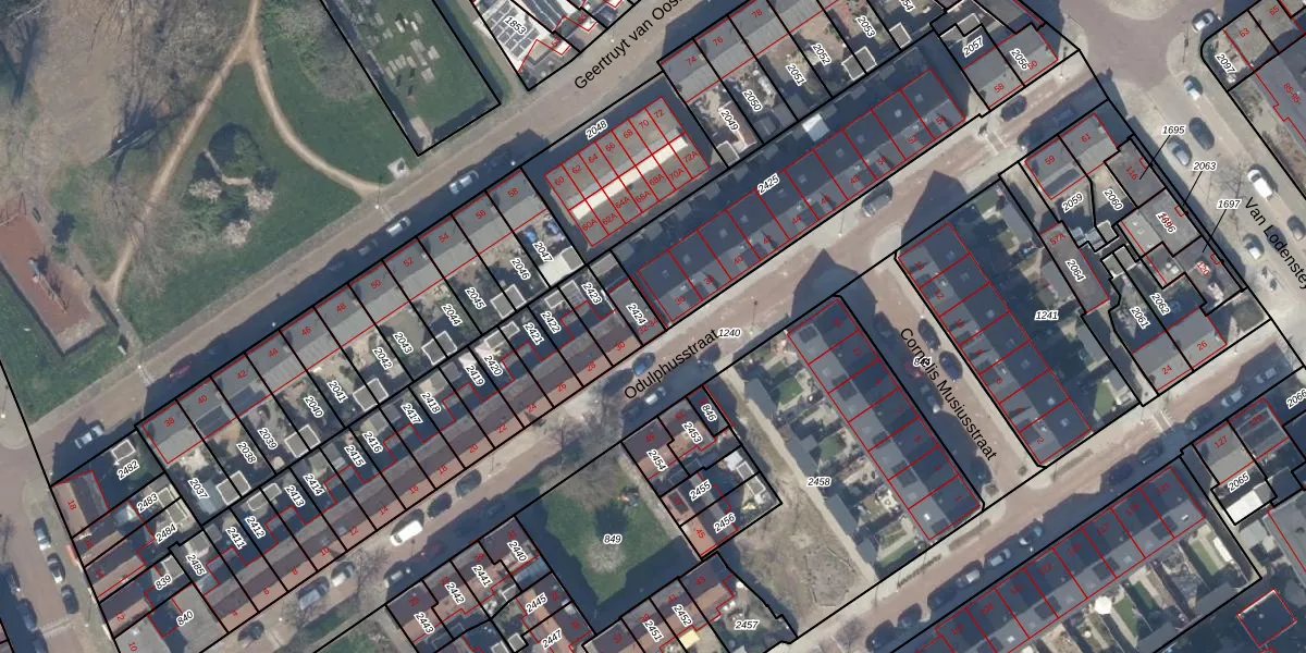 Het perceel waarop Odulphusstraat 32 staat heeft een oppervlakte van 64 m². Dit is een klein perceel. De perceeloppervlakte wordt geregistreerd door het Kadaster. Gedetailleerde informatie over de maten van dit perceel kunt u vinden in het rapport Kadastrale kaart met maatvoering van Odulphusstraat 32.