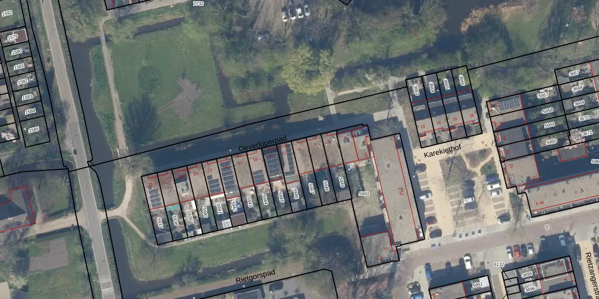 Gebruik de zoekbalk of klik op een perceel voor informatie over de adressen binnen dit perceel.