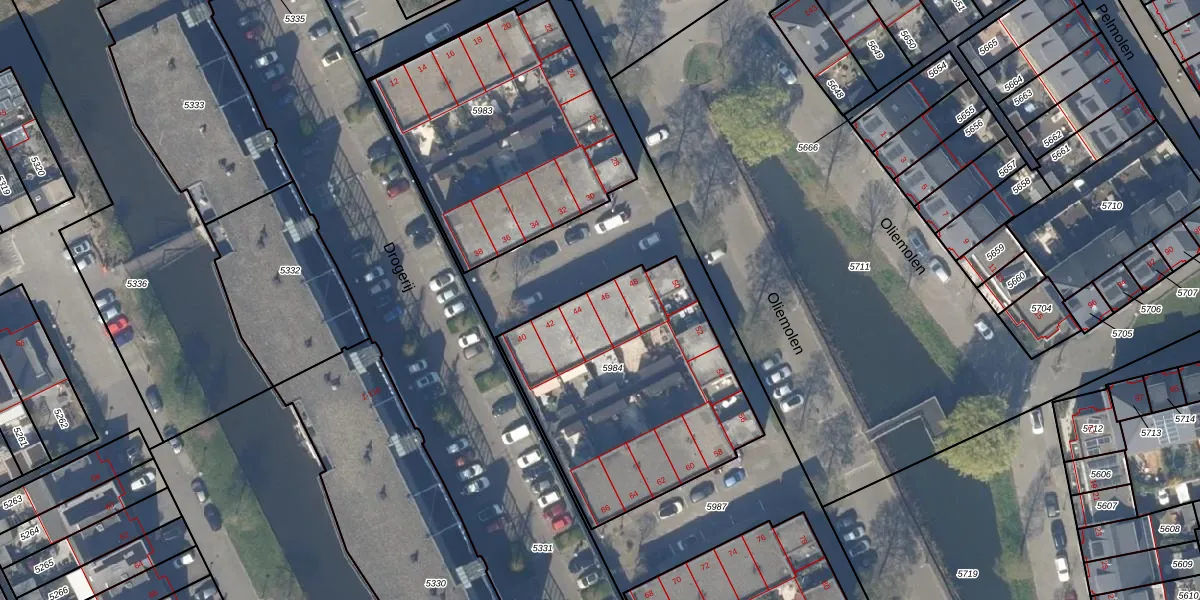 Oliemolen 46 is gelegen op kadastraal perceel DEL00W5984. Deze kadastrale aanduiding is uniek en wordt gebruikt door het Kadaster om eigendomsrechten en andere zakelijke rechten vast te leggen. Het perceel maakt onderdeel uit van de kadastrale gemeente Delft.