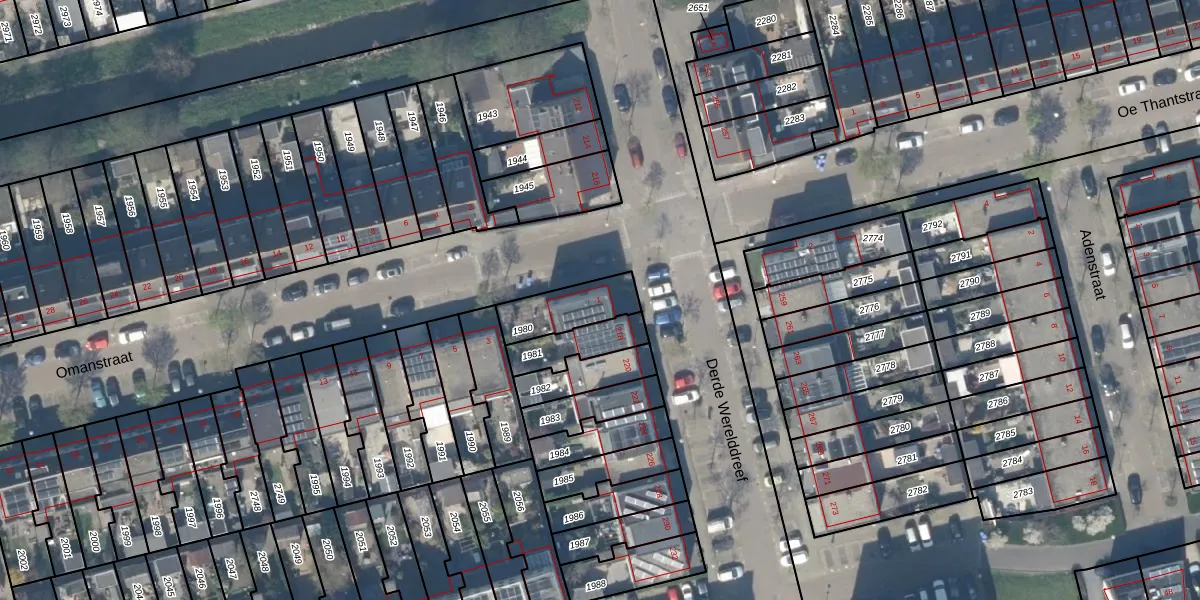 Gebruik de zoekbalk of klik op een perceel voor informatie over de adressen binnen dit perceel.
