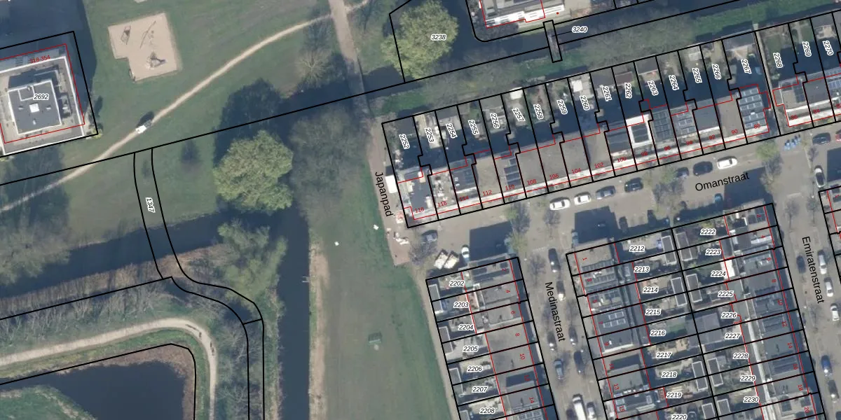 Gebruik de zoekbalk of klik op een perceel voor informatie over de adressen binnen dit perceel.